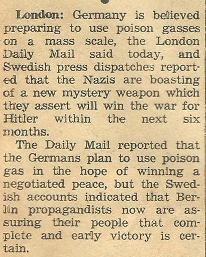 This entry was posted in historical, historical media, primary resource, World War Two and tagged 1944, british press, dauphin manitoba, hitler, old newspaper, poison gas, world war two. Bookmark the permalink.
