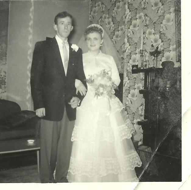Mom and dad in the living room of Hales Cottage