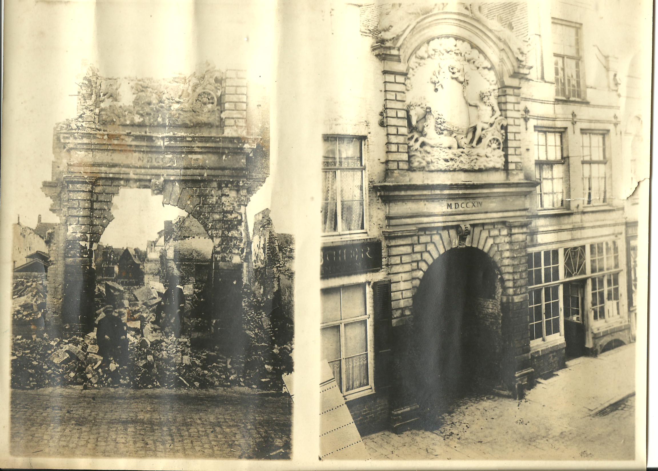 If anyone can offer insight into this photo I would appreciate it.  The back says “Ypres,” and the picture is evidently a contrast of a street scene before and after the Great War.  The date on the arch  is Roman numerals for 1894. Anyone know?  I just don’t have enough time to research, but want to share….